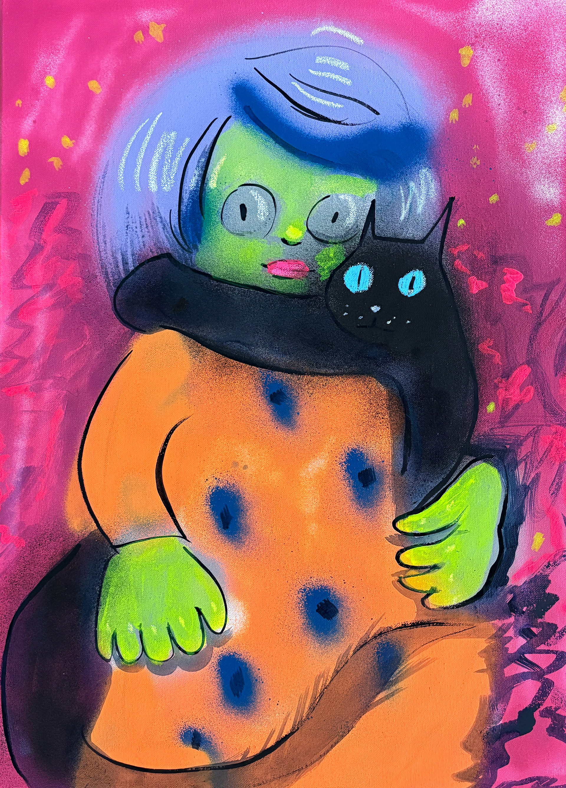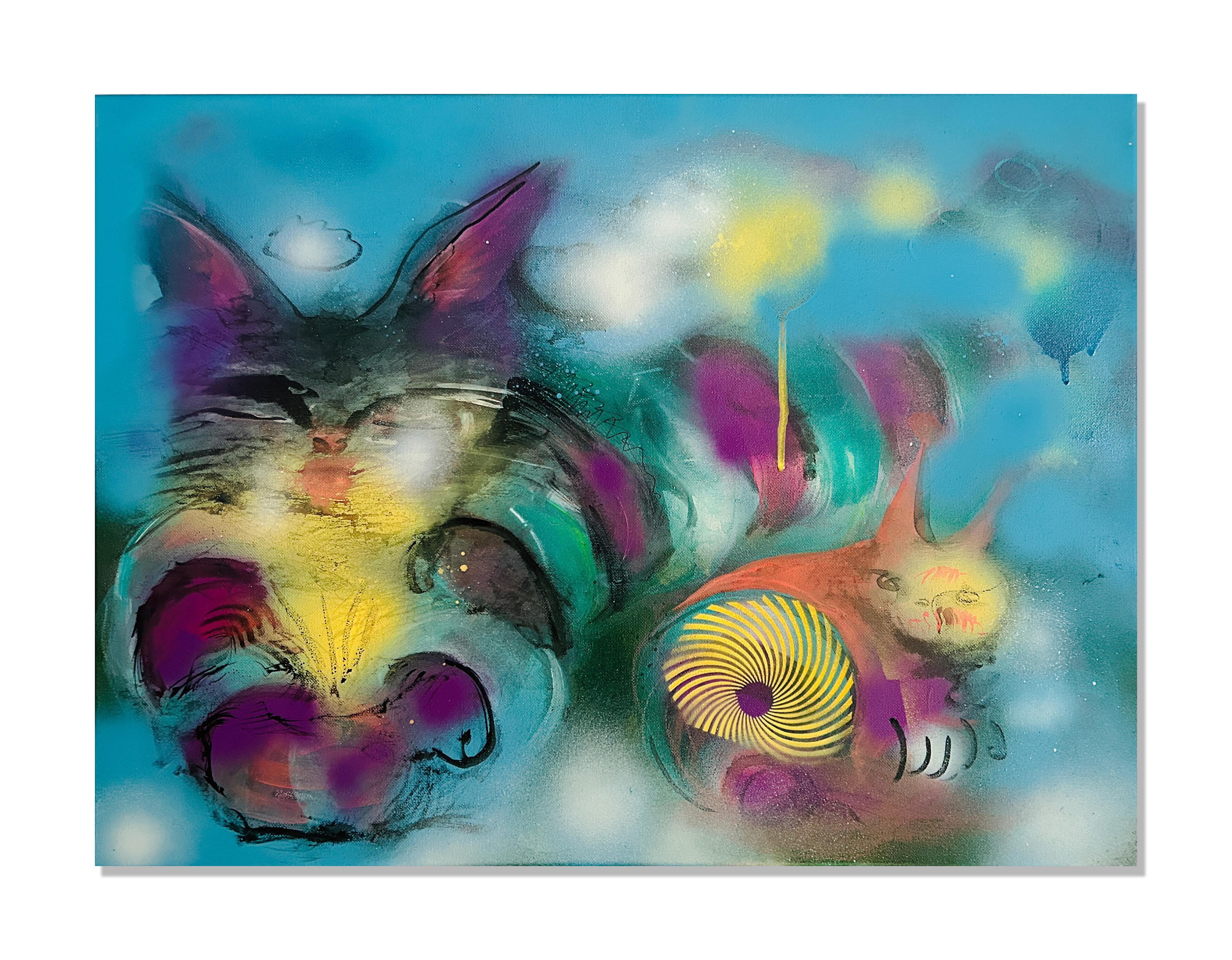 Acrylic and spray paint on stretched canvas
