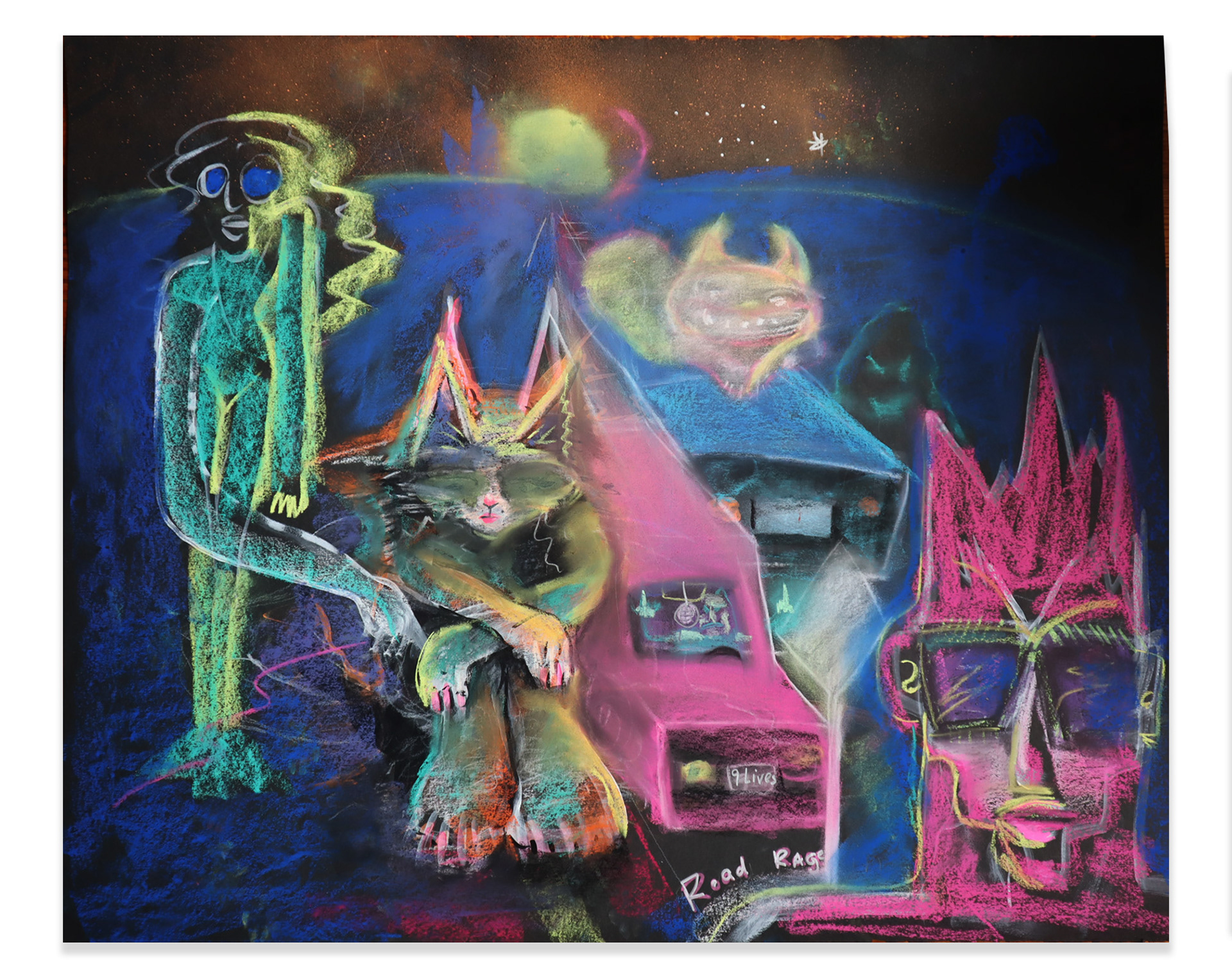 I paint, draw, and animate shape-shifting feline characters that unapologetically take up space, both physically and emotionally, in humorous, playful, and surreal ways. Through this work, I satisfy the longings of my inner child by reclaiming the 'well-behaved, sidekick' female cartoon characters—often portrayed as passive—and emboldening them with the mischievous spirit of iconic figures like Disney’s Cheshire Cat.