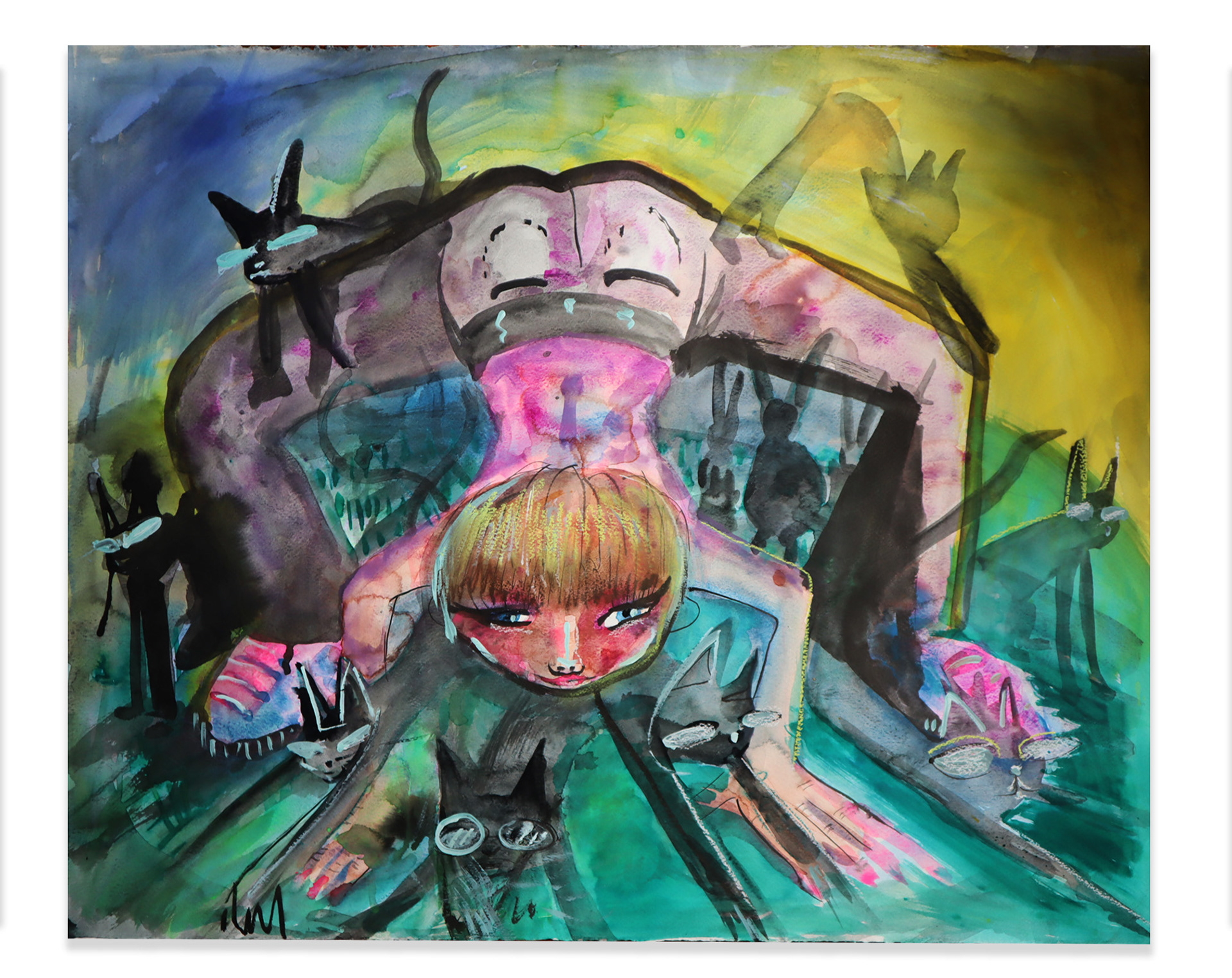 Automatic drawing and painting act as catalysts for humor that evolve into animations or zines. Using watercolor, gouache, and acrylic on canvas, board, or paper.